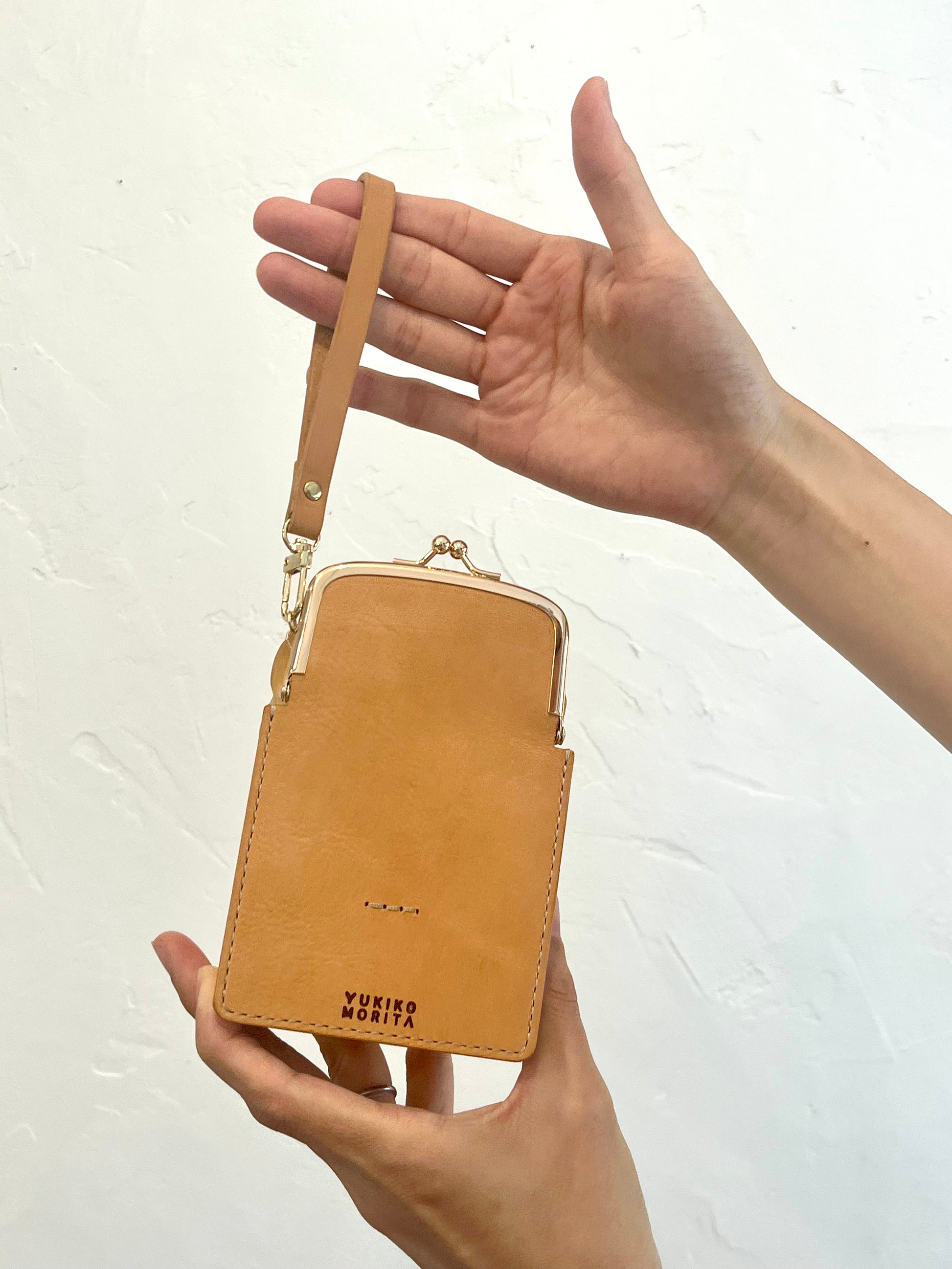 On the back, you’ll find a genuine leather clasp pouch.
